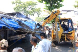 भाईंदर (प.) – मिरा-भाईंदर महानगरपालिकेने शहरातील सार्वजनिक जागा व पदपथ मोकळे करण्याच्या मोहिमेला गती देत भाईंदर पश्चिम स्टेशन रोड परिसरातील अनधिकृत छपरे, हातगाड्या आणि शाळांच्या १०० मीटर परिसरातील पानटपऱ्यांवर मोठ्या प्रमाणात कारवाई केली.