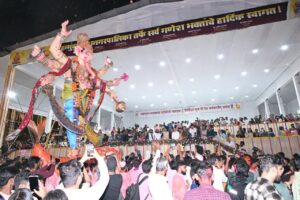 गिरगाव चौपाटी, मुंबई – महाराष्ट्र शासनाने गणेशोत्सवाला राज्य महोत्सवाचा दर्जा दिल्यानंतर, त्याचा जल्लोष आज गिरगाव चौपाटीवरील विसर्जन सोहळ्यात उच्चांक गाठताना दिसला. ढोल-ताशांच्या निनादात, “गणपती बाप्पा मोरया”च्या जयघोषात संपूर्ण वातावरण भक्तिभावाने भारावून गेले होते.